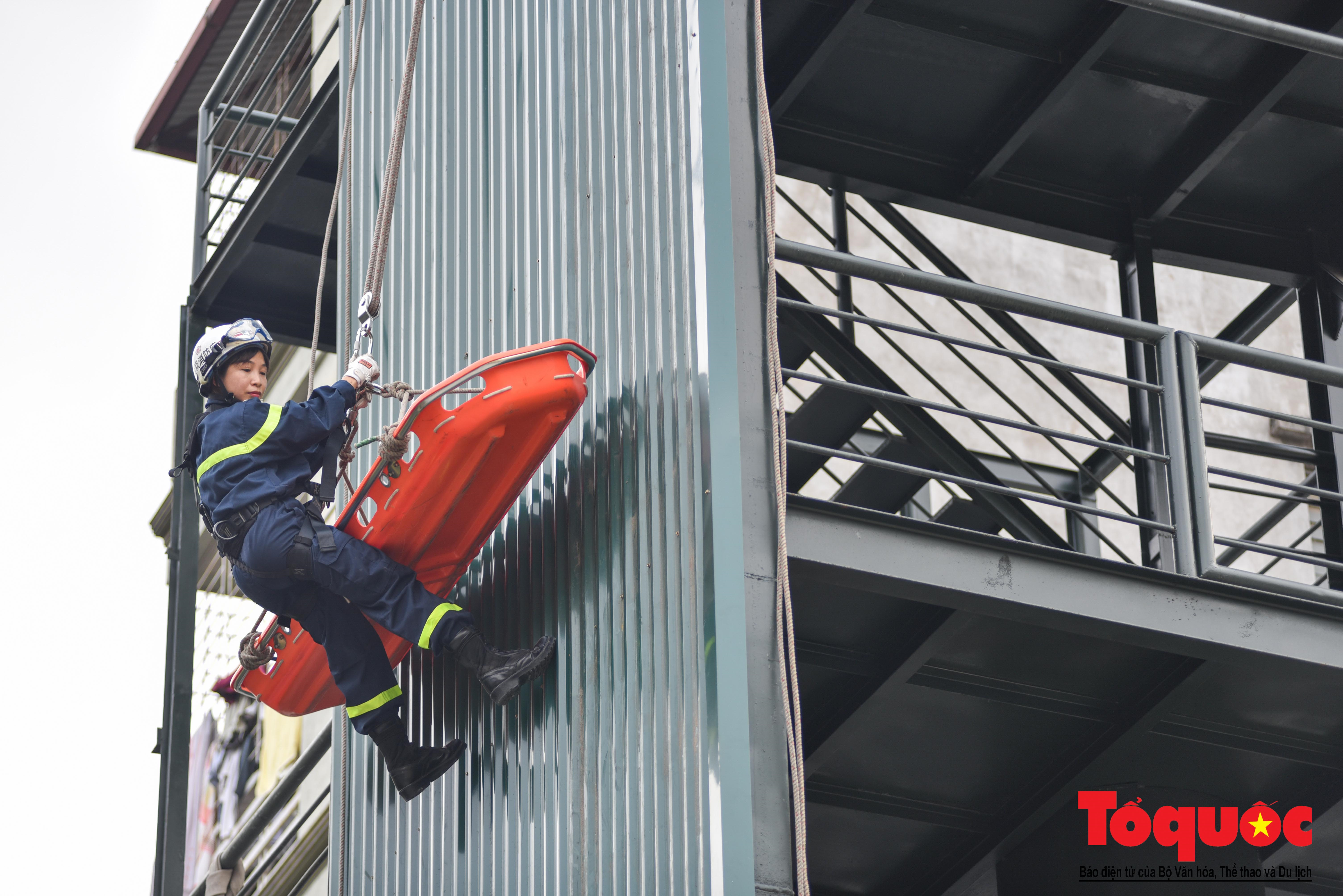 Hình ảnh bông hồng thép của lực lượng PCCC và CNCH tập luyện các phương án cứu hộ. |