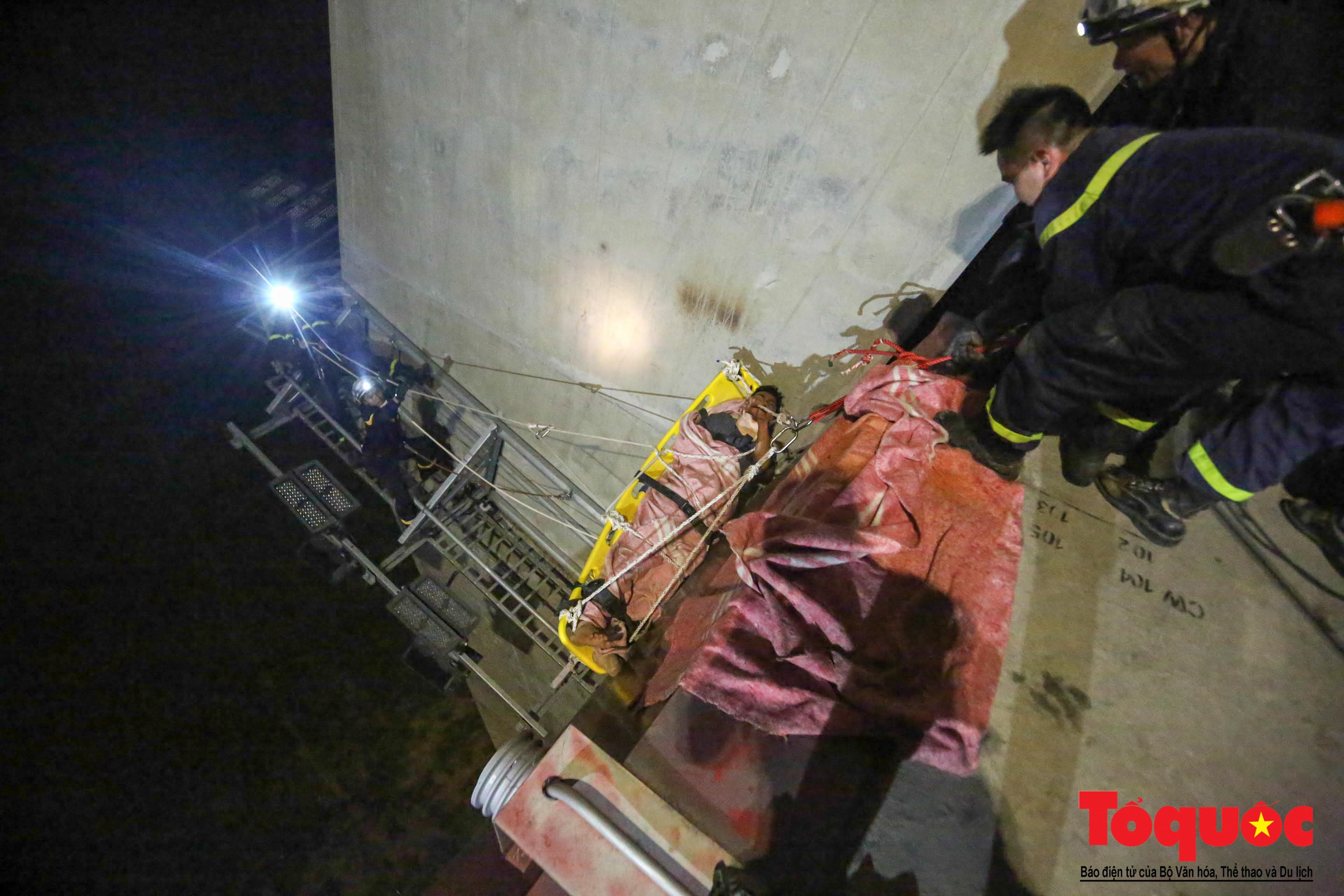 Lực lượng CNCH Hà Nội cứu người bị ngã từ cầu Nhật Tân xuống đất. |